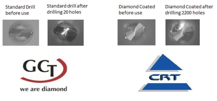 CRT is the North American stocking distributor for GCT’s Diamond Coated Tools. GCT GmbH (www.gctool.com) has been delivering their diamond coated carbide tools for over ten years. As of 2016 their annual volume has exceeded 1.2 million pieces and only continues to grow.