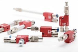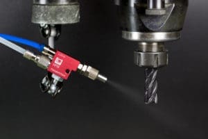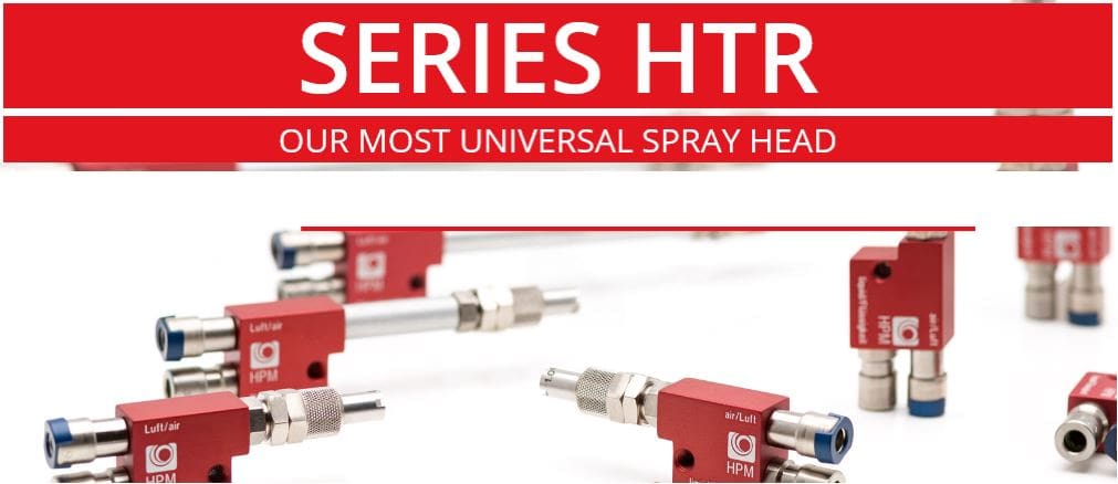 All HPM spray heads are available individually or as a spray group. The spray group contains air and fluid connections (check valve) for the distributor. The benefit of a mounted check valve on the spray head prevents fluid from dripping out though the spray head.