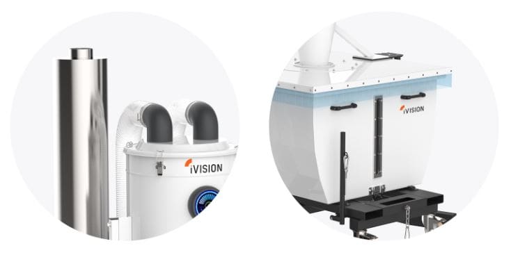 The iV4 chip collectors of the Extrusion line are dedicated to intensive and continuous machining and are used alongside large double-head saws or automatic cutting centers with a high chip production. In general, chip collectors iV4 with 1000 litre storage buckets are used in all work environments where large amounts of chips and dust are produced. The world’s leading extrusion manufacturers have been using iVision line iV4 systems for several years. Thanks to the high chip collection capacity (up to 1000 litres) and the automatic lid opening system, iVision iV4 is particularly appreciated in the world of the extrusion industry.