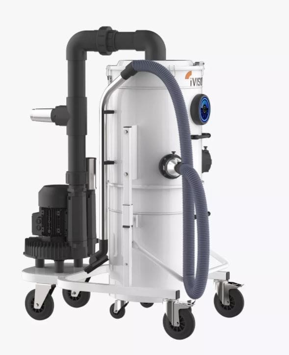 The industrial vacuums of the Clean iV Custom line, are custom designed based on the true demands of the client to collect chips and liquid from lathes, saws, and work centers. When it comes to, for example, industrial cleaning systems for floors, iVision has always developed a specific kit composed of a fixed brushed positioned in the front part of the vacuum and a handle for moving. In other cases a single iVision industrial vacuum from the iV Custom line can be utilized by more than one operator simultaneously with the cleaning kit of various diameters (50mm, 70mm, 100mm) to take the utmost advantage of the excellent performance of the side-channel turbine.
