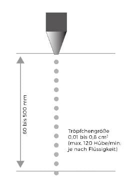 • The distance between the positioning of the drip-feed dosing device and the point of impact is ideally between 60 and 500 mm — on the fluid.