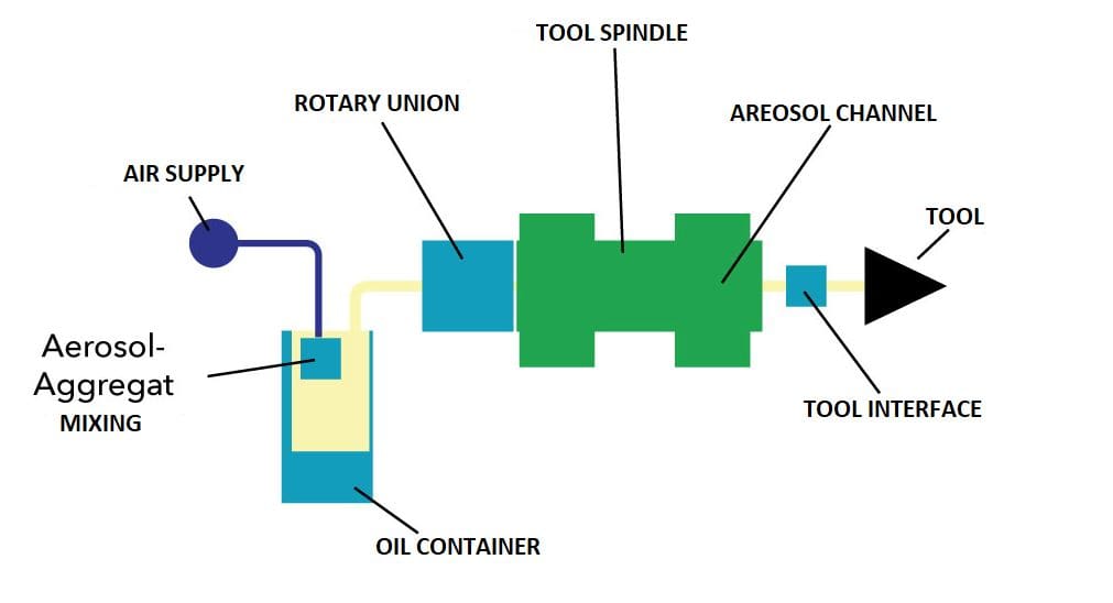 The HPM Breeze process is the consequent further development of previously known processes for dispensing liquids of all kinds in the finest form. Based on previous core areas of application (quantity lubrication / MQL / MMKS), the HPM Breeze process picks up on today’s technical requirements and reinterprets the previously known options for dispensing liquids. The HPM Breeze process is used to lubricate and cool machining processes with small amounts of cooling lubricant. An air / liquid mixture is used that prevents the generation of frictional heat through optimal lubrication. The remaining heat is dissipated via the tool and the chip.